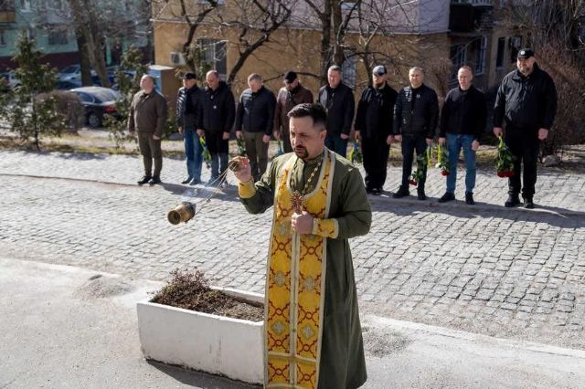 Військовий священник (капелан) 23-ї окремої бригади «Хортиця» НГУ отець Діонісій відслужив панахиду за загиблим воїном. У своїй молитві він закликав берегти пам’ять про тих, хто став щитом для України та її народу.