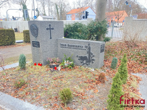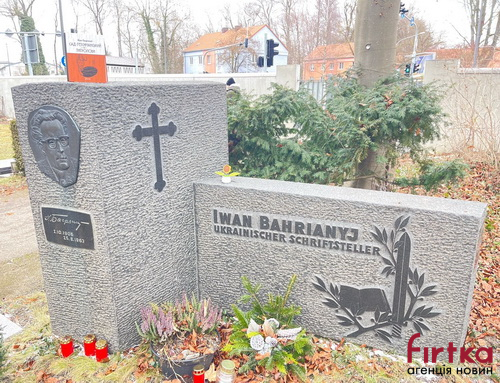 Оглянувши поховання з іншого боку, бачимо на іншій глибі вже напис німецькою: «Іван Багряний, український письменник».