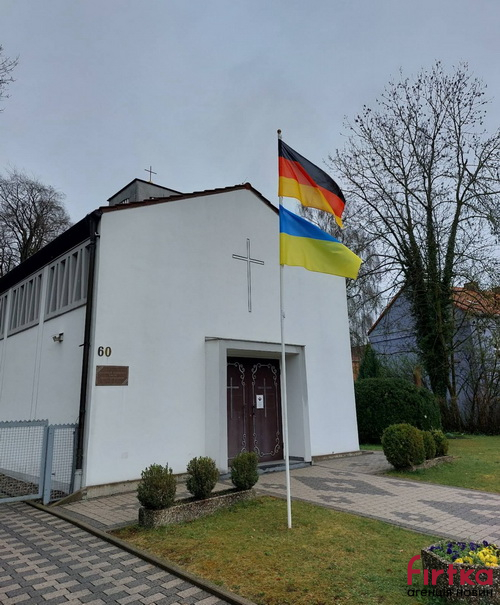 Навпроти кладовища бачимо також український прапор, і, на перший погляд, не надто примітну, модерну церкву.