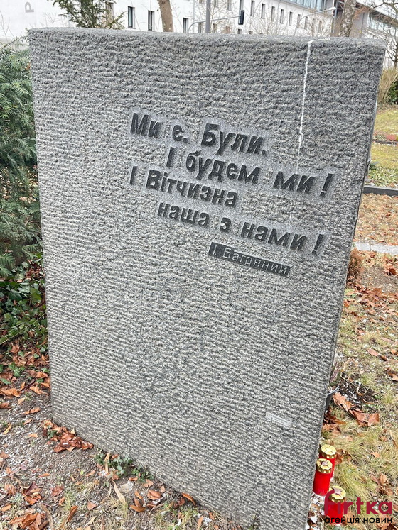 Зовсім недалеко від центру вже Нового Ульму знаходиться кладовище. Знайшовши вхід по вулиці Ройттір та прямо напроти перехрестя вулиці Фіннінгер, заходимо, і одразу ж ліворуч при вході бачимо українську мову, і слова: