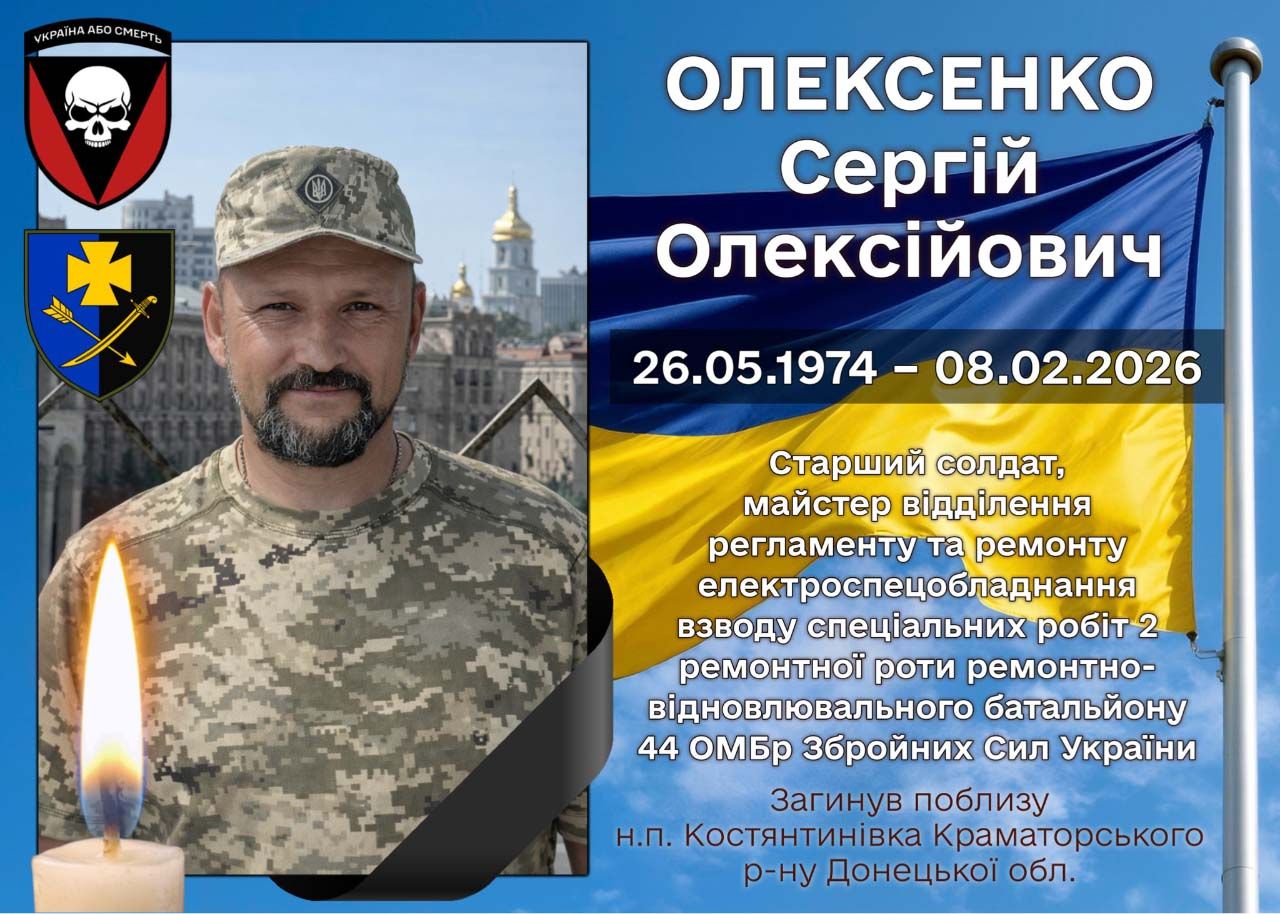 За інформацією Хорольської міської ради, 8 лютого 2026 року під час ворожого артилерійського обстрілу в районі міста Костянтинівка Краматорського району Донецької області загинув Олексенко Сергій Олексійович — старший солдат, майстер відділення регламенту та ремонту електроспецобладнання взводу спеціальних робіт.