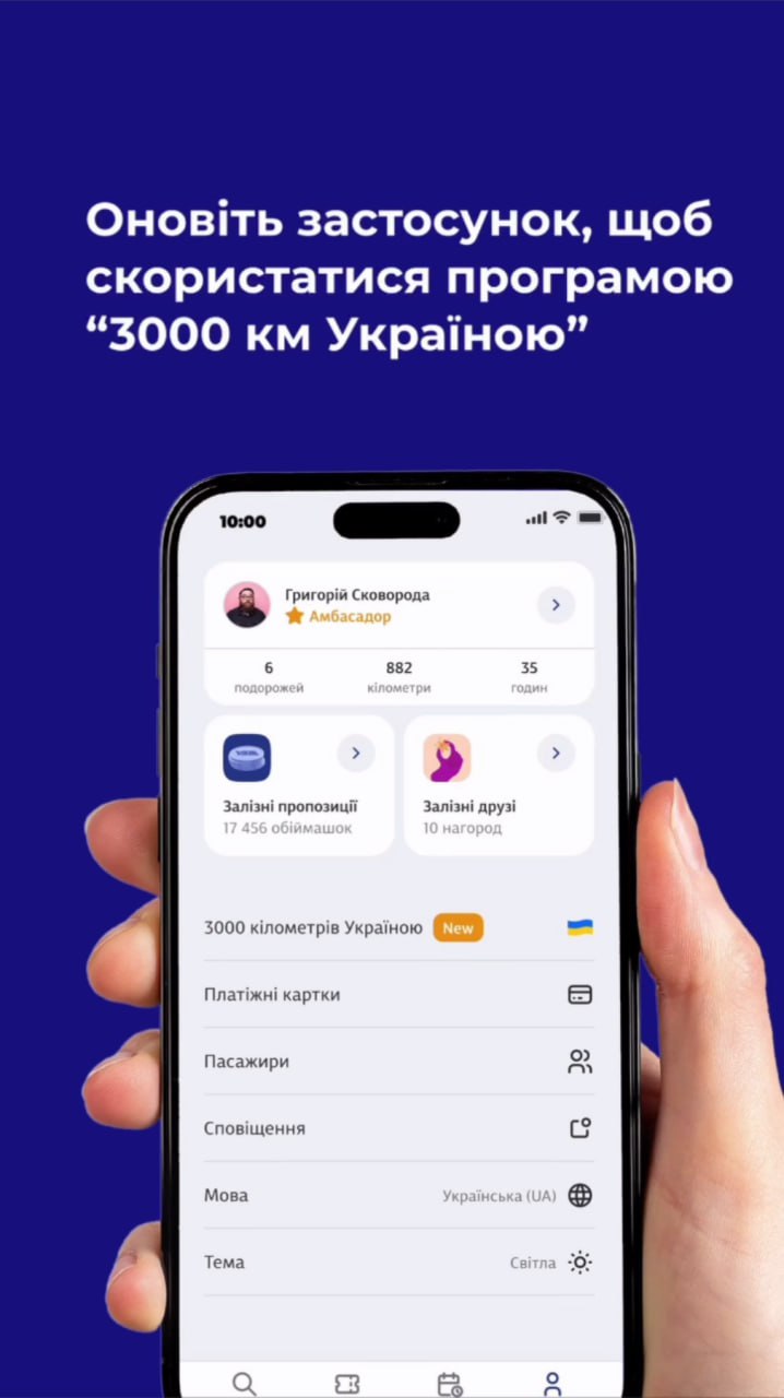 Програма дозволить використовувати 3000 км поїздок у непікові періоди, коли є вільні місця. Їх Укрзалізниця пропонуватиме саме у вагонах плацкарт, купе, регіональних поїздах та 2 клас Інтерсіті.