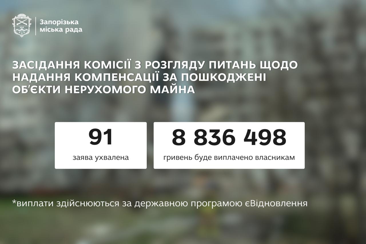 На ньому погодили отримання компенсації за 91 заявкою на суму 8 мільйонів 836 тисяч 498 гривень. Виплати здійснюватиме держава за програмою єВідновлення.