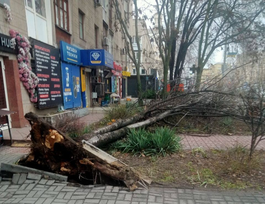 Зокрема, одне з дерев впало прямо на жвавому проспекті Соборному, де щодня проходить величезна кількість людей та автомобілів.