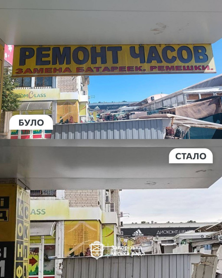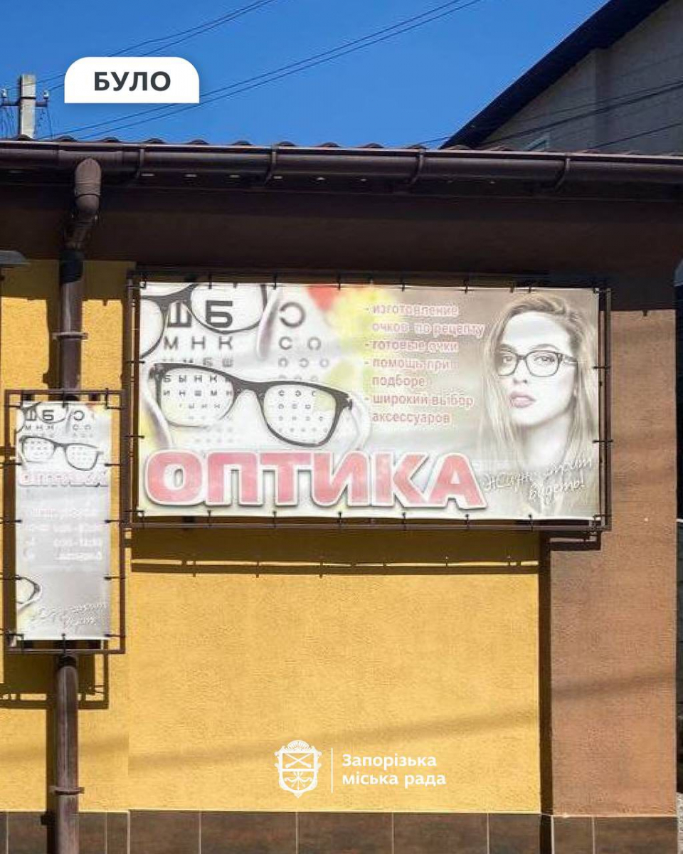 • зникли російськомовні написи «ремонт часов» та «оптика»;